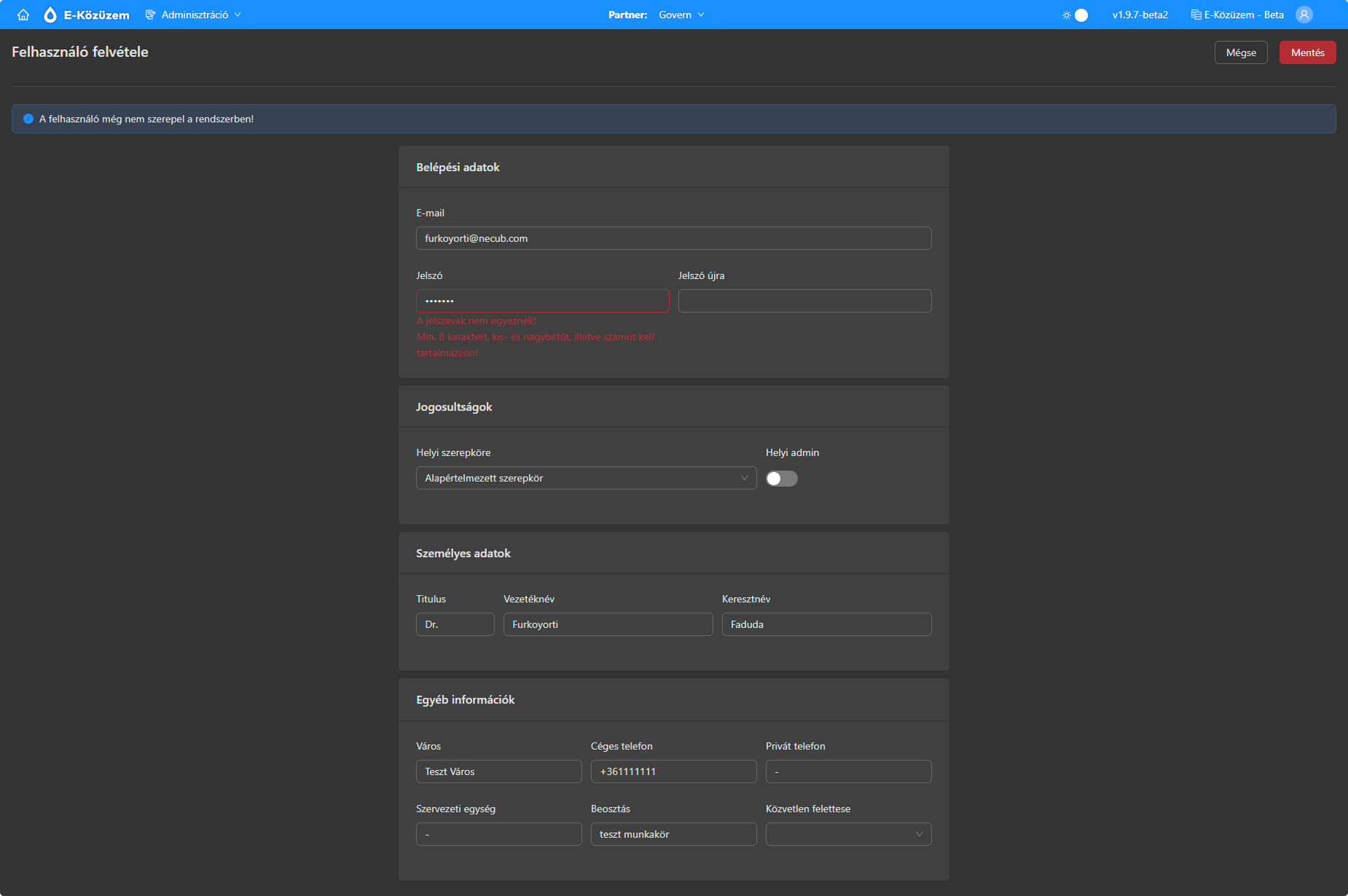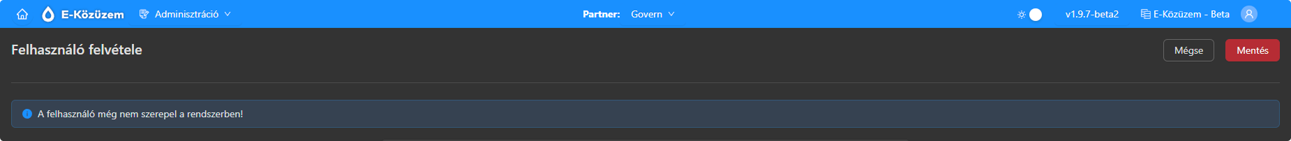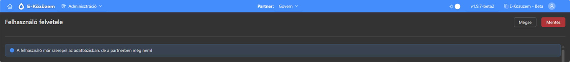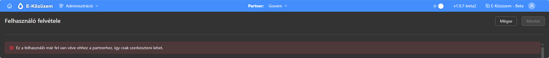 - "Ez a felhasználó már fel van véve ehhez a partnerhez, így csak szerkeszteni lehet." - felhasználó rögzítve lett központi adatbázisba és partnerhez is hozzá van rendelve