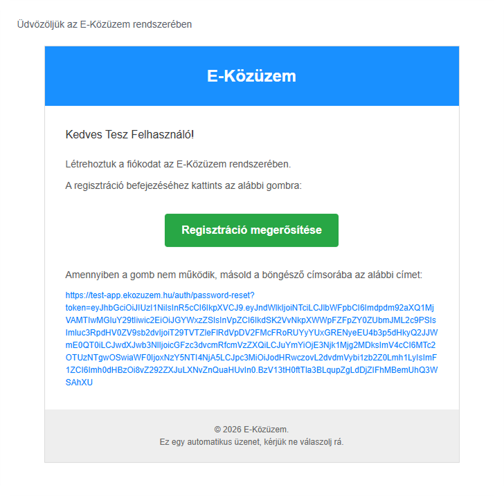 A rendszer regisztrációs e-mailt küld a megadott címre.