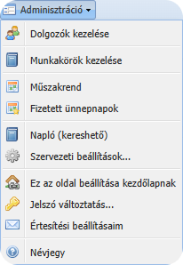 Az Adminisztráció menüpont alatt az alábbi opciók érhetők el: