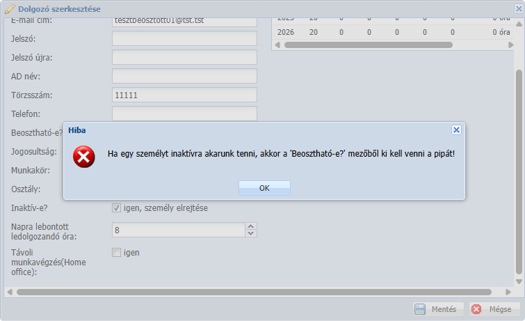 csak nem beosztható dolgozó állítható inaktív státuszba,