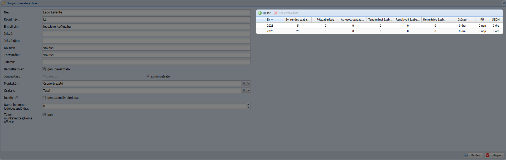 A szabadság adatok összevontan jelennek meg.