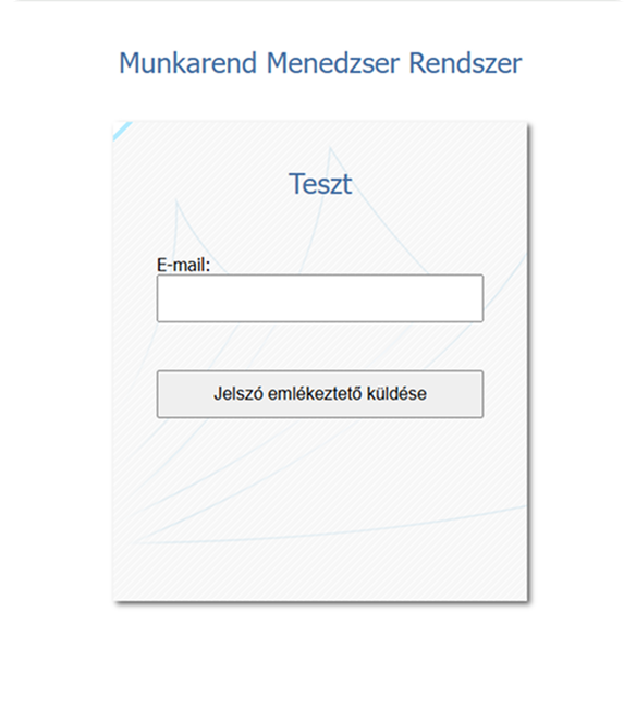 Felületen a felhasználóhoz tartozó mailcímet megagdva, majd a "Jelszóemlékeztető küldése" gombra kattintva a rendszer e-mailt küld a megadott mailcmre.
