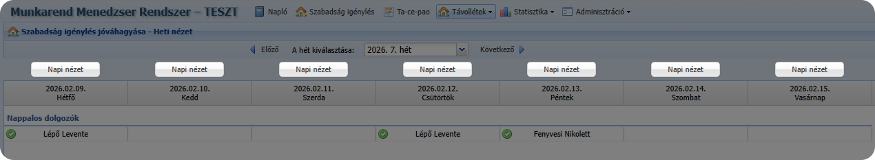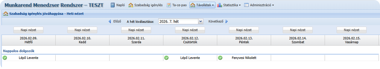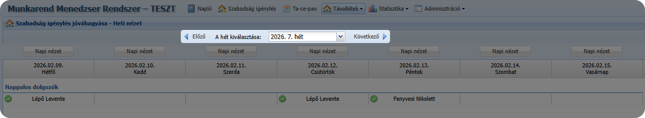 Távollétek → Szabadság jóváhagyás – Heti nézet