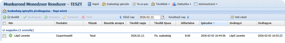 8. Szabadság jóváhagyás – Napi nézet