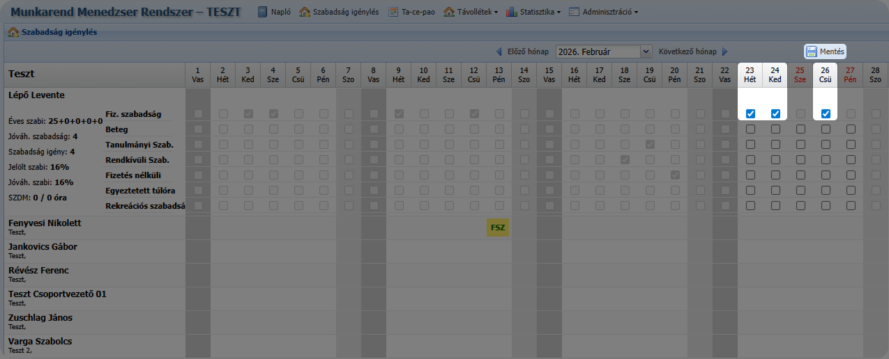 ilyen napokon szabadság rögzítése nem lehetséges,