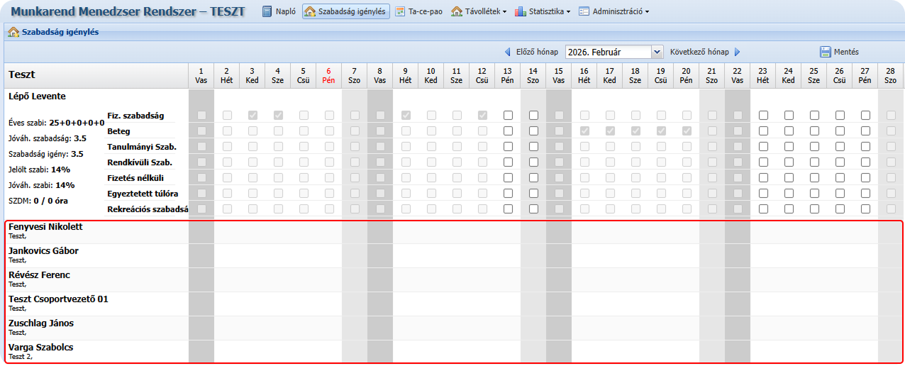Azonos munkakörben dolgozó felhasználók szabadságolása megjelenik a felületen.