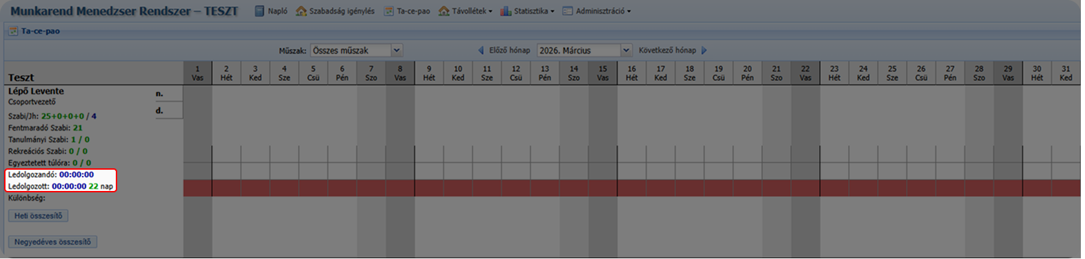 Az adott hónapban jóváhagyott távollétek óraszáma levonásra kerül a ledolgozandó munkaórákból.