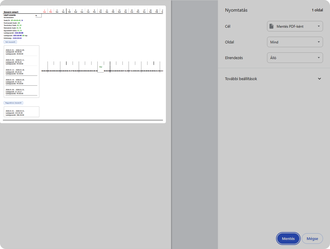 az összesített munkaidő- és szabadságadatokat,
