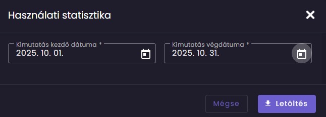 A workspace tulajdonosa, valamint az általa adminisztrátori jogosultsággal felruházott felhasználók jogosultak a modulhasználat statisztikai adatainak lekérdezésére és exportálására. Ezt a funkciót a Workspace beállításai felületen érhetjük el, ahol lehetőség van a használati adatok Excel formátumban történő letöltésére.