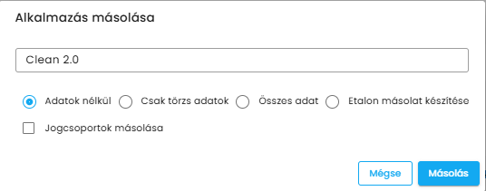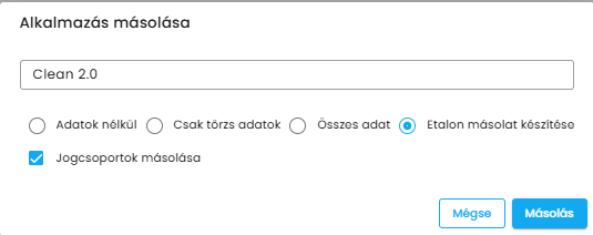 - Alkalmazás másolása törzsadatokkal