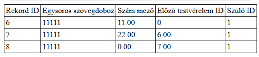 | Szülő rekord megnyitása | Opció megnyitja adott rekord szülőjé rekordját. |